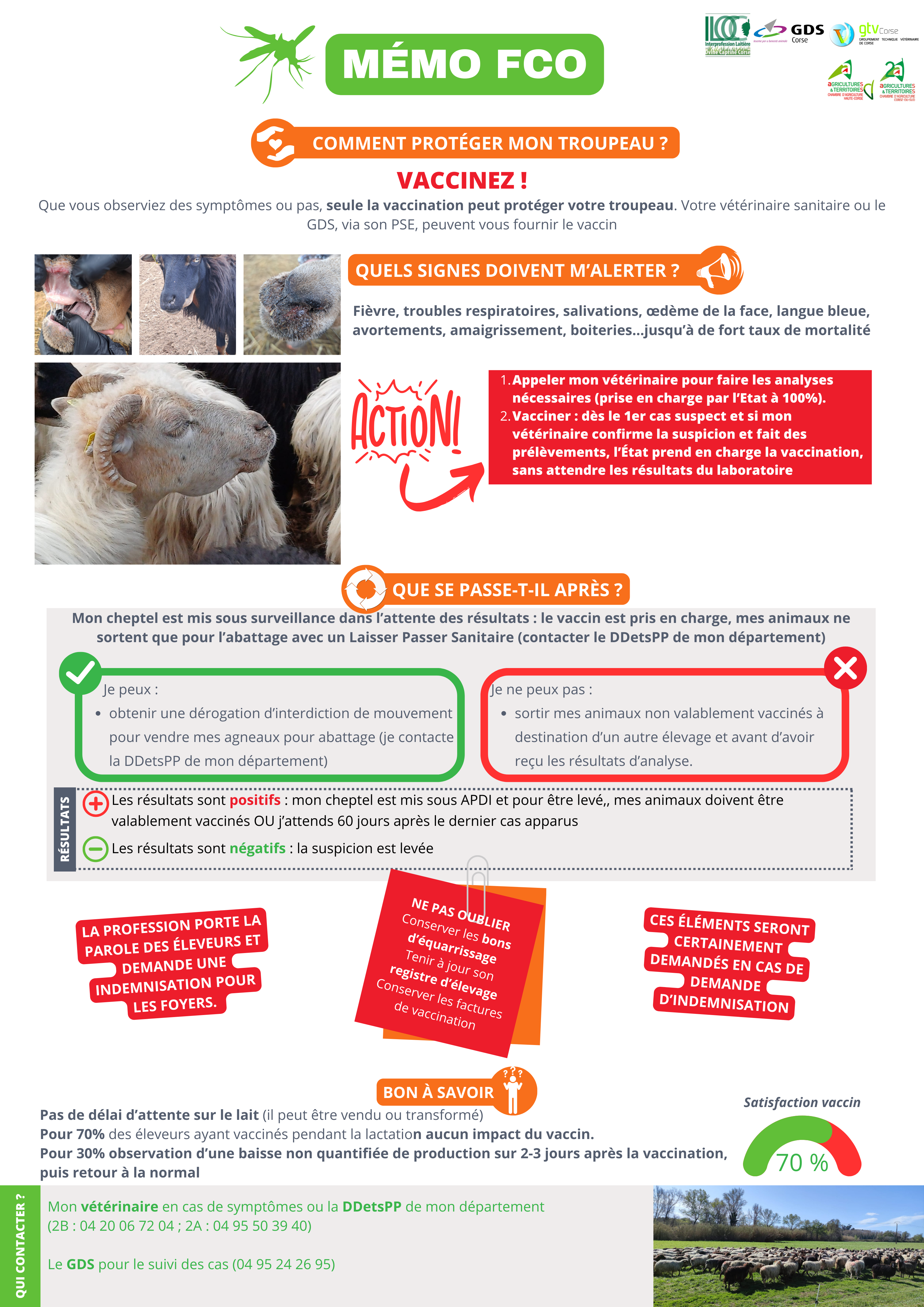 Plusieurs cas cliniques de Fièvre catarrhale ovine – sérotype 8 (FCO – 8) – sont apparus chez des ovins depuis le début de l’automne sur la Corse. Initialement localisées à quelques communes, la maladie s’est propagée en quelques semaines. De nouveaux foyers ovins continuent d’apparaitre.