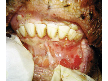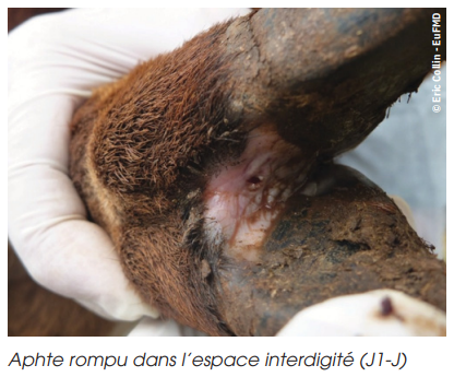 –> Vésicules qui s’ouvrent en ulcères douloureux, notamment dans la bouche, sur les pieds et/ou mamelle ce qui peut entrainer une chute de la lactation.